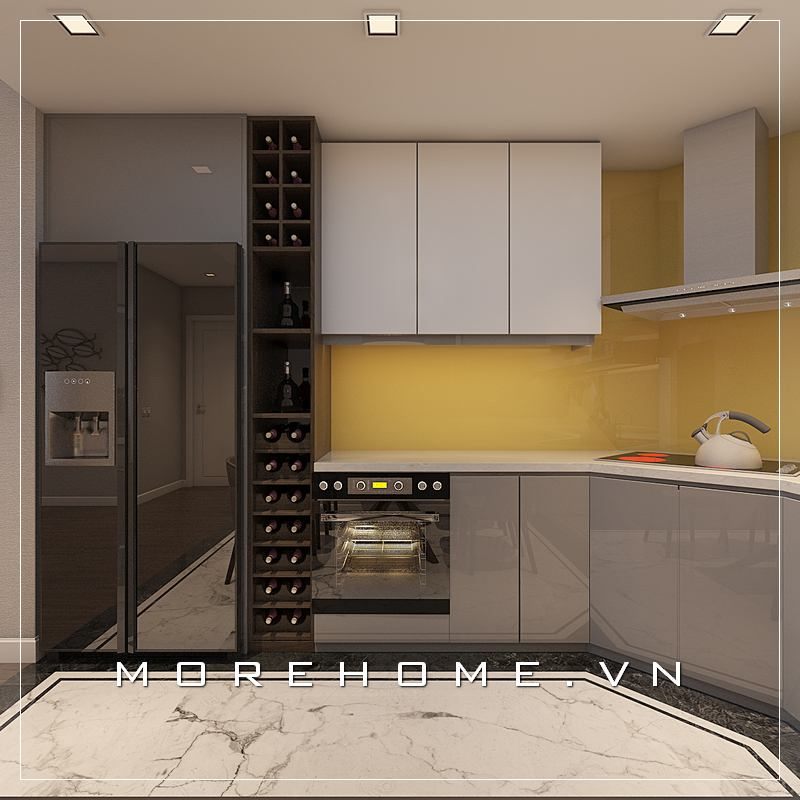 Hệ thống tủ được làm với 2 loại gỗ công nghiệp đó là gỗ MDF và gỗ acrylic bóng gương tạo nên sự sang chảnh và tiện nghi cho căn bếp.