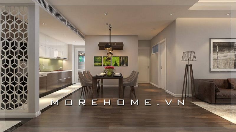 Mẫu tủ bếp gỗ công nghiệp màu trắng - nâu hiện đại hài hòa, nhẹ nhàng với không gian nội thất chung cư ngôi nhà.