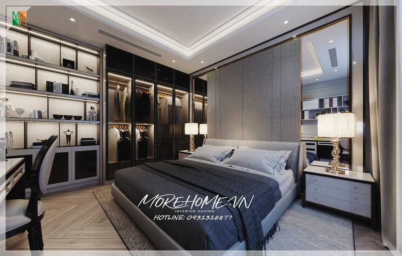Được bố trí tab ở bên cạnh đầu giường với 2 màu đen trắng nơi cất đồ và là nội thất giúp trang trí thêm cho phòng ngủ hiện đại.