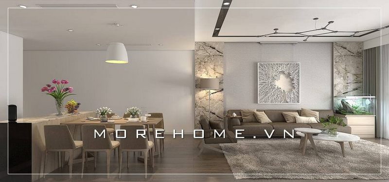 Mẫu thiết kế phòng khách của chung cư hiện đại được bố trí có sắc nét với ngăn nắp và các phần cứng được đặt theo thứ tự hợp lý.